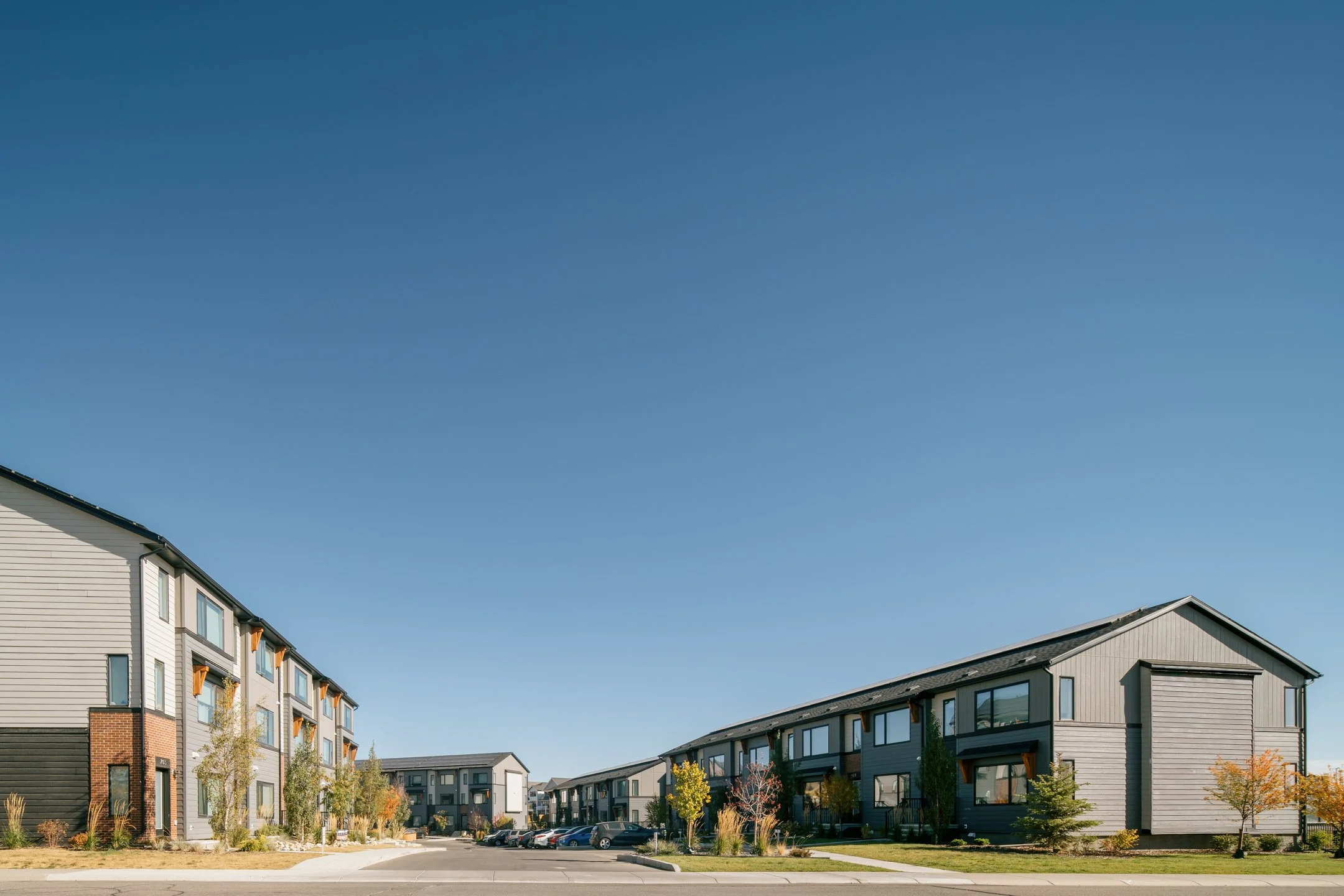 Emerge Arbour Lake townhomes are designed in collaboration with Avalon Master Builder. These townhomes feature 87 units across seven buildings, located at the corner of Arbour Lake View and Arbour Lake Road NW. Working with Avalon has been inspiring as they have a clear goal to make the build of these townhomes net carbon zero. With the buildings aim to be net carbon zero, we had to consider the roof's design, utilizing a relatively simple low slope configuration, ensuring the appropriate number of solar panels could be installed. This project is exceptional not only for being net-zero but also as one of the few rental-only developments within the community.