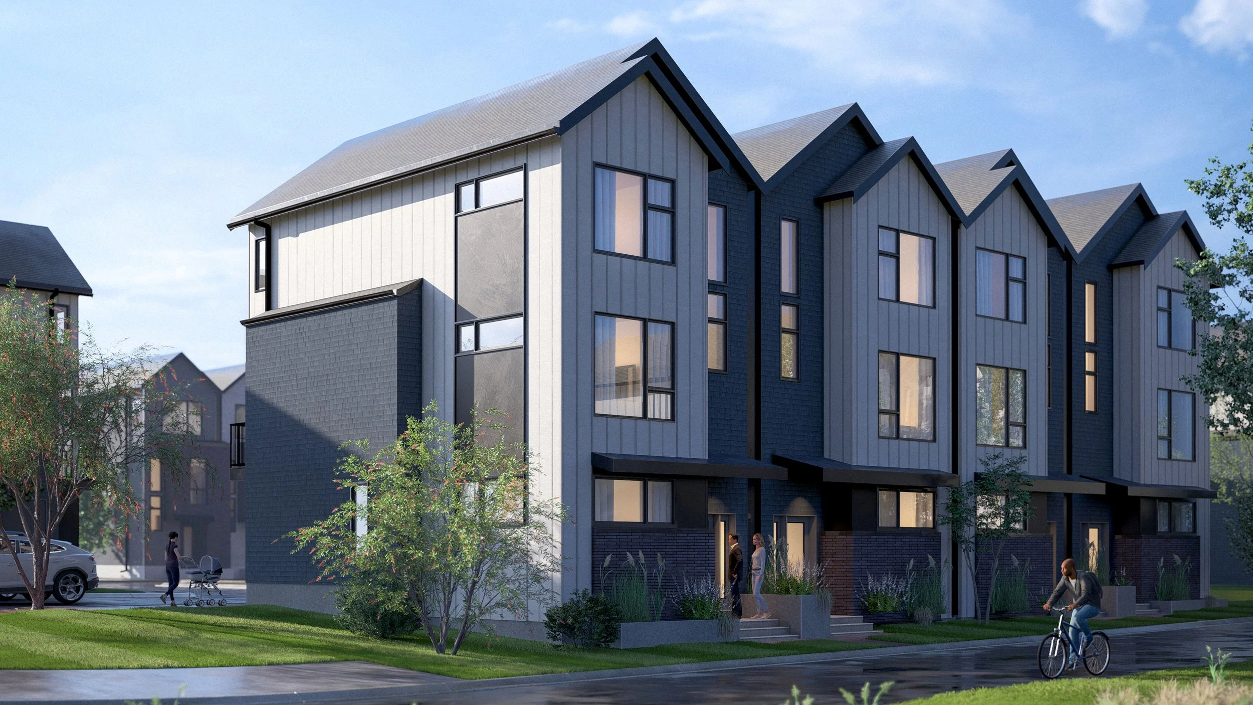 Harmony Townhomes is a thoughtfully refined multi-residential development in Rocky View, AB. Over the past year and a half the project underwent multiple redesigns to both the unit plans and overall site configuration, allowing the team and client to fully test feasibility, livability, and long-term value before moving forward.
